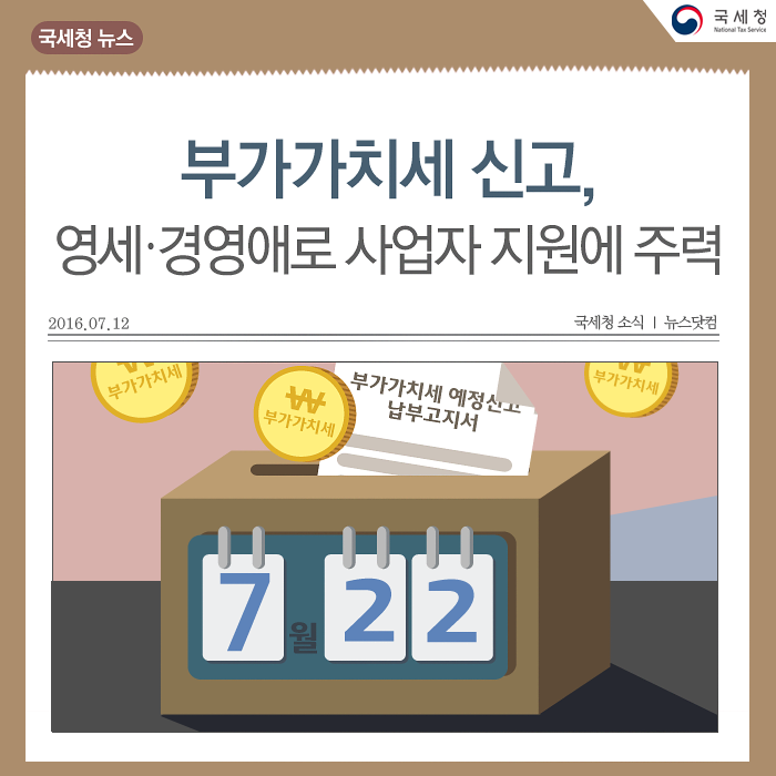 | 제목 | 부가가치세 확정신고, 영세․경영애로 사업자 지원에 주력 (국세청) | 작성일 | 2016-07-19 | |||||||||||||